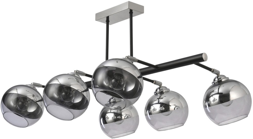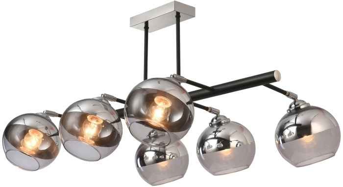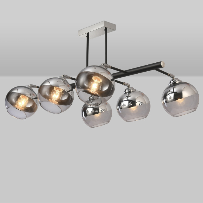 Осветительный прибор разработан в стиле Модерн. Применяются лампочки с цоколем E27 мощностью 360 Вт, в количестве 6 шт.