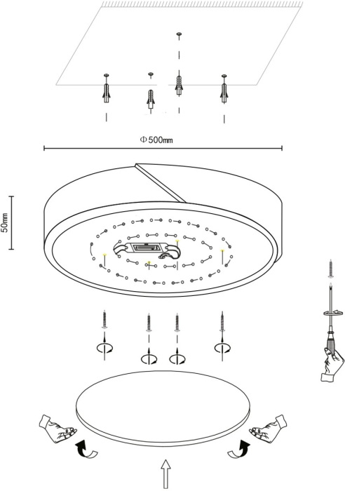 Осветительный прибор выполнен в стиле Модерн. Используются лампочки цоколя LED мощностью 48 Вт, количеством 1 шт. Цвет модели 445-647-01: Бежевый,Белый,Чёрный.