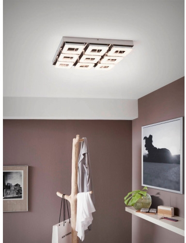 Осветительный прибор создан в стиле Современный. Применяются лампочки с цоколем LED мощностью 36 Вт, в количестве 9 шт. Основной цвет модели 95658: Хром.