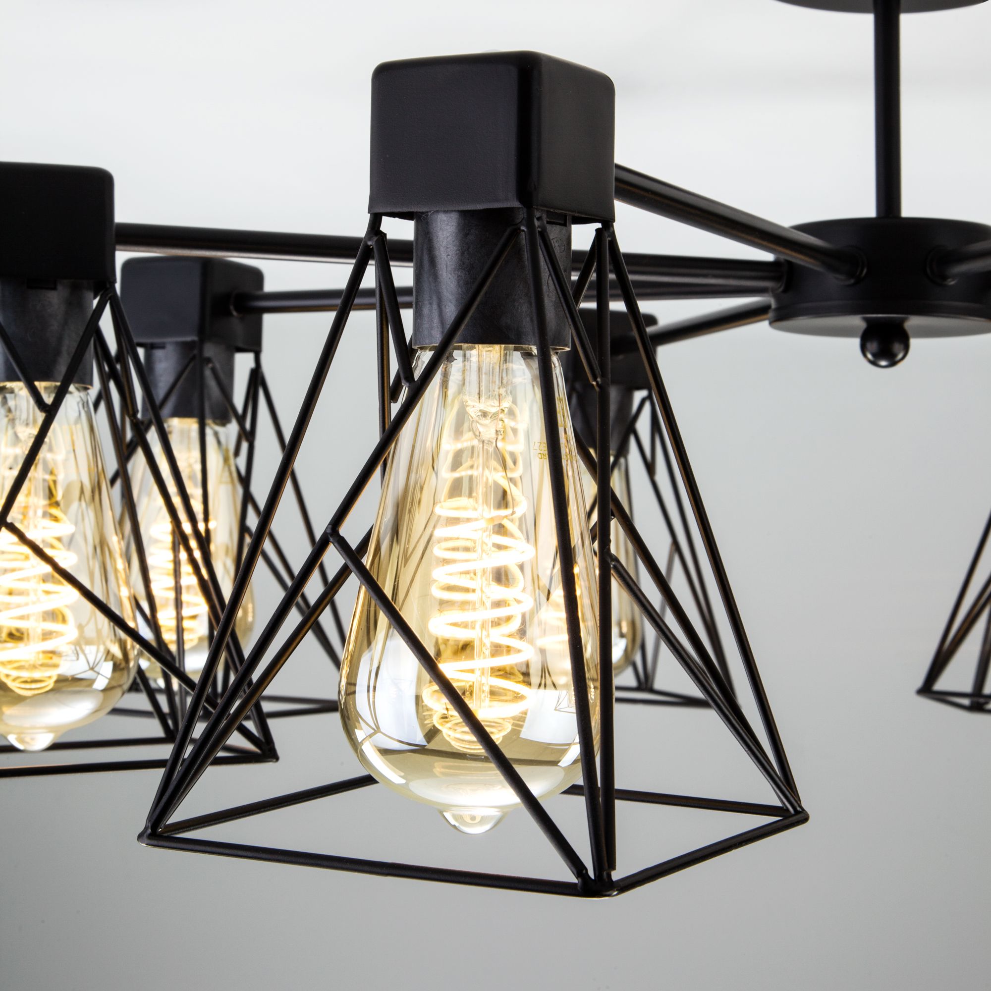 Осветительный прибор разработан в стиле Индустриальный. Применяются лампочки цоколя E27, в количестве 5 ед. Цвет модели a044747: Чёрный.