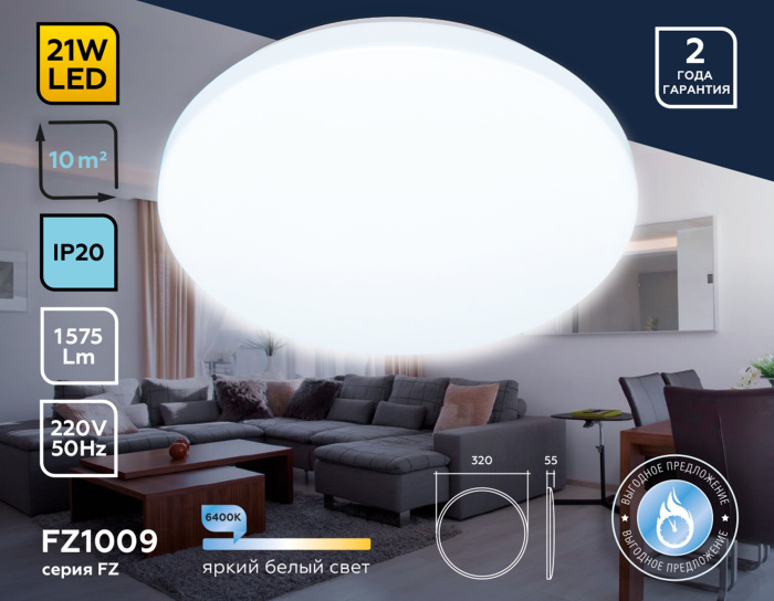 Осветительный прибор разработан в стиле Современный. Используются лампочки с цоколем LED мощностью 21 Вт. Основной цвет модели FZ1009: Белый.