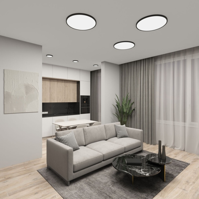 Потолочный светильник DK6522-BK – это продукция бренда Denkirs, относящаяся к коллекции THIN. Размеры: высота 25 мм, диаметр 400 мм. Светильники Denkirs DK6522-BK выполнены из высококачественных и прочных материалов: Полимер, плафон - Акрил.