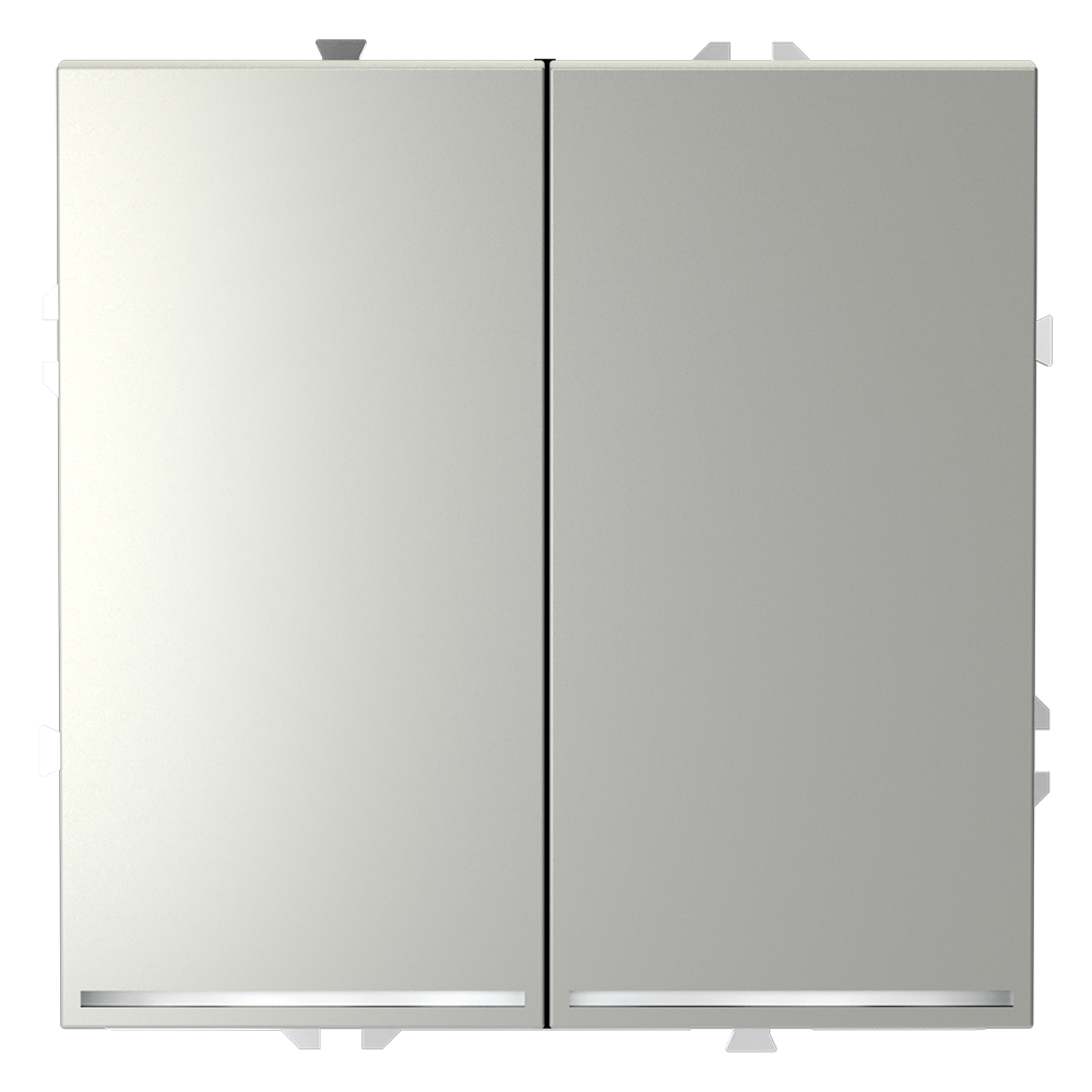 Проходной переключатель двухклавишный с подсветкой 10А, сталь Voltum S70 VLS020405