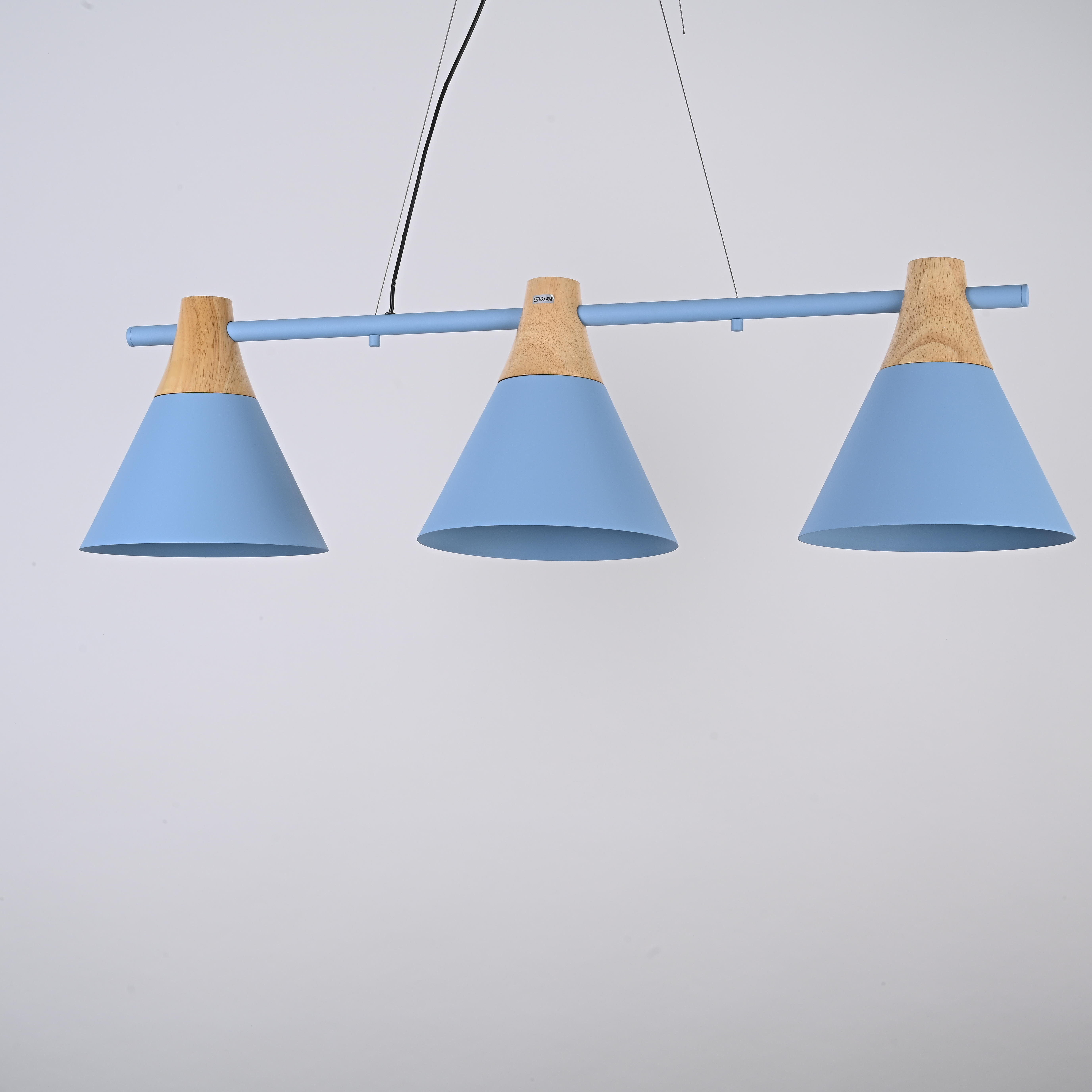 Осветительный прибор разработан в стиле Скандинавский. Применяются лампочки цоколя E27 мощностью 180 Вт, в количестве 3 ед. Цвет модели 191621-26: Голубой.