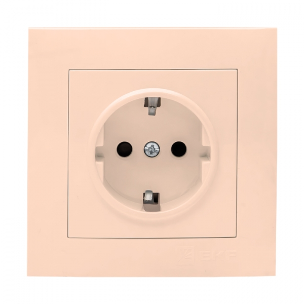 Розетка 1-местная с/з 16А кремовая с защ. штор. EKF Валенсия EWR16-028-20