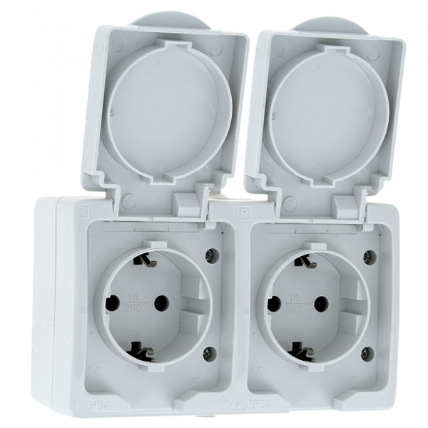 Розетка 2-местная 16А с заземлением с крышкой IP54 белый с защ. штор. EKF Венеция EVR16-129-10-540