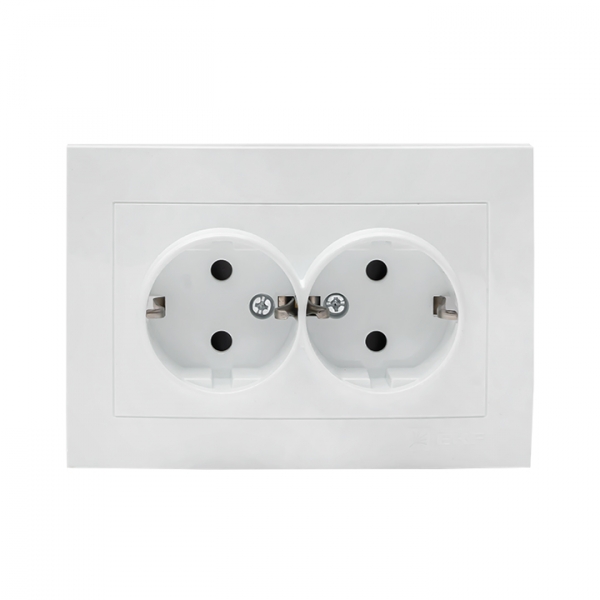 Розетка 2-местная с/з 16А белая с защ. штор. EKF Валенсия EWR16-128-10