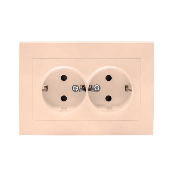 Розетка 2-местная с/з 16А кремовая с защ. штор. EKF Валенсия EWR16-128-20