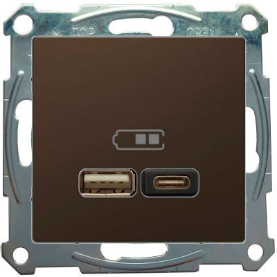 Розетка 2-я USB 2.4 A+C Merten D-Life Мокко MTN4366-0110+MTN4367-6052
