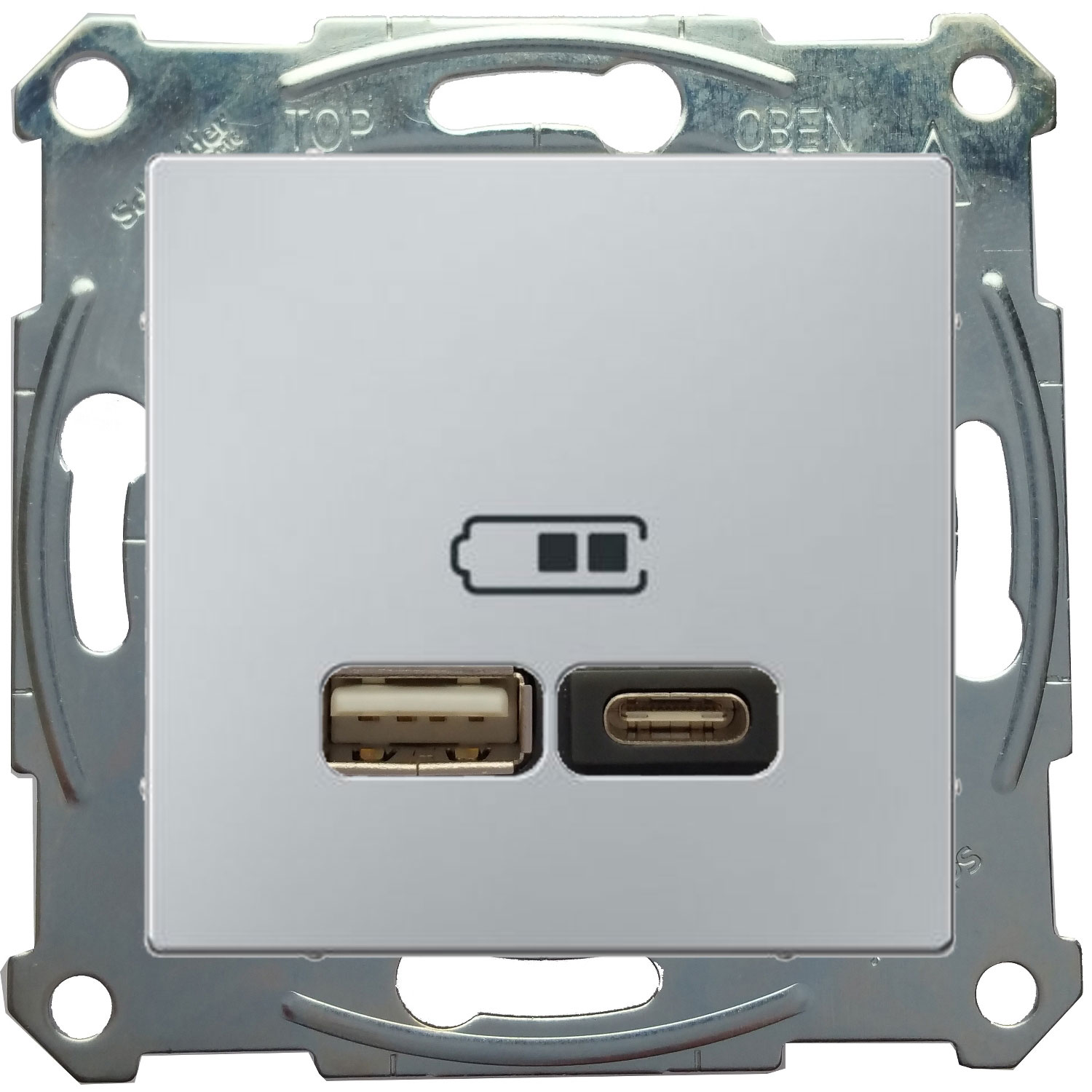 Розетка 2-я USB 2.4 A+C Merten Серия M Алюминий MTN4366-0110+MTN4367-0460