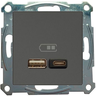 Розетка 2-я USB 2.4 A+C Merten Серия M Антрацит MTN4366-0110+MTN4367-0414