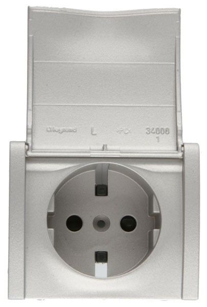 Розетка 2К+З, немецкий стандарт, винтовые клеммы С КРЫШКОЙ Legrand Galea Life Алюминий 775921+771322