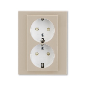 Розетка двойная ABB Levit с заземлением со шторками 16А кофе макиато / белый 5522H-C03457 18W 2CHH223457C6018