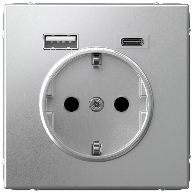 Розетка электрическая со шторками с зарядным устройством USB-A+C (Алюминий) Systeme Electric (Schneider Electric) Art Gallery GAL000332