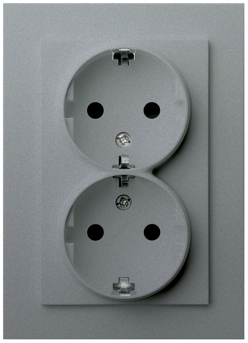 Двойная розетка SHUKO алюминий, с защитными шторками (2P+T), 16A 250V~ Jasmart G-Series G5504S