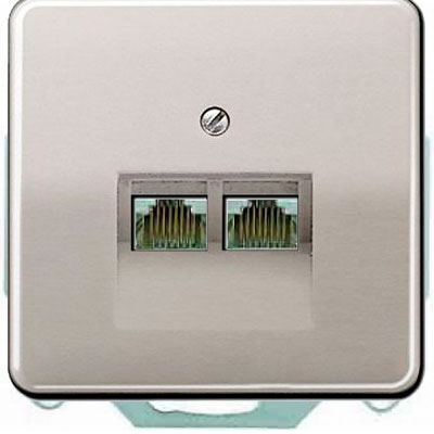 Розетка компьютерная 2-ая наклонная 6 кат UAE Jung CD Платина EPUAE8-8UPOK6+CD569-2UAPT