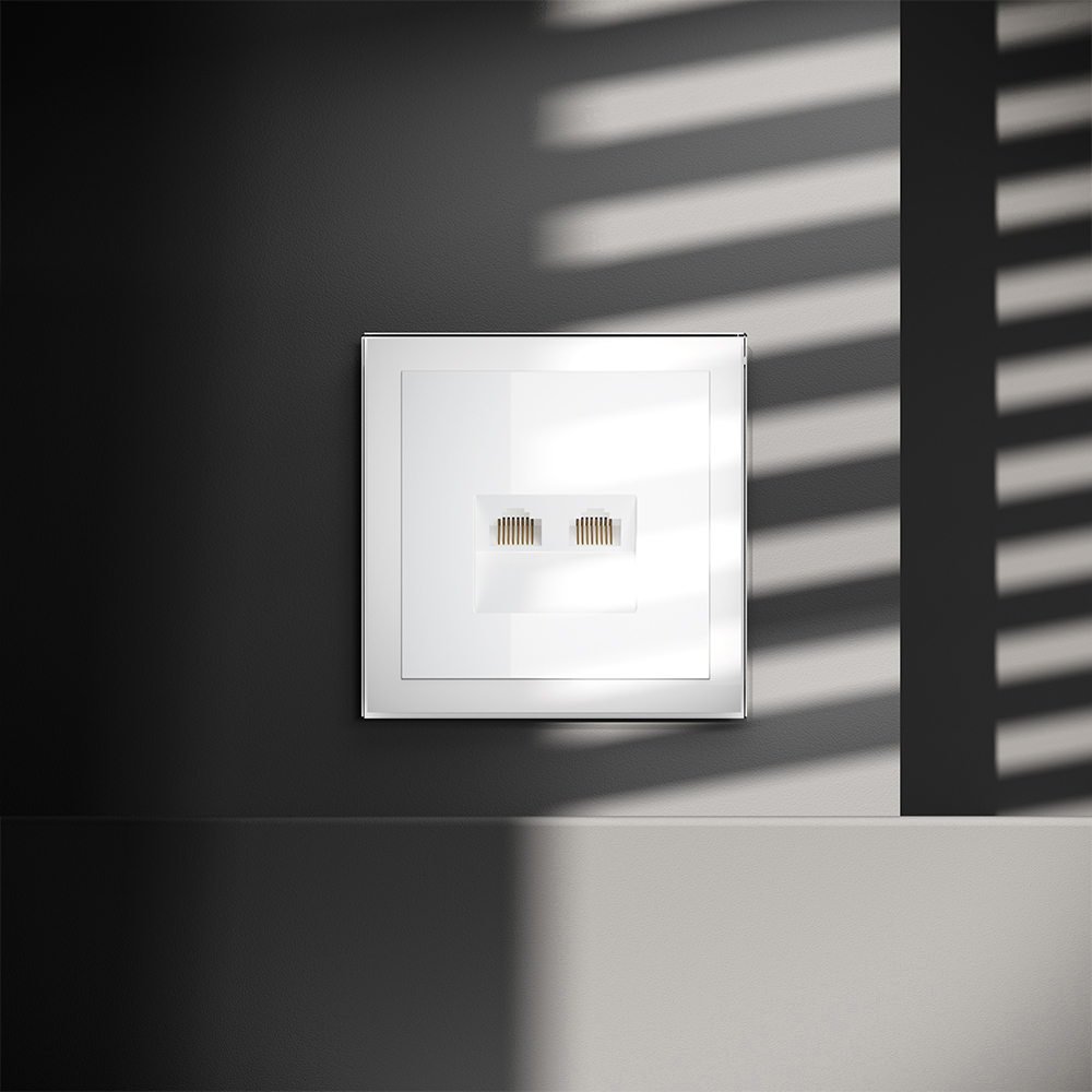 Розетка компьютерная двойная RJ45+RJ45 кат.6, белый глянцевый Voltum S70 VLS060201