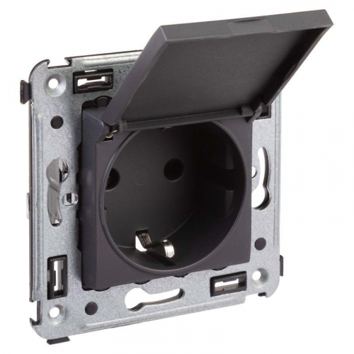 Розетка с крышкой в стену 2P+E с з/ш Черный матовый DKC Avanti 4412013