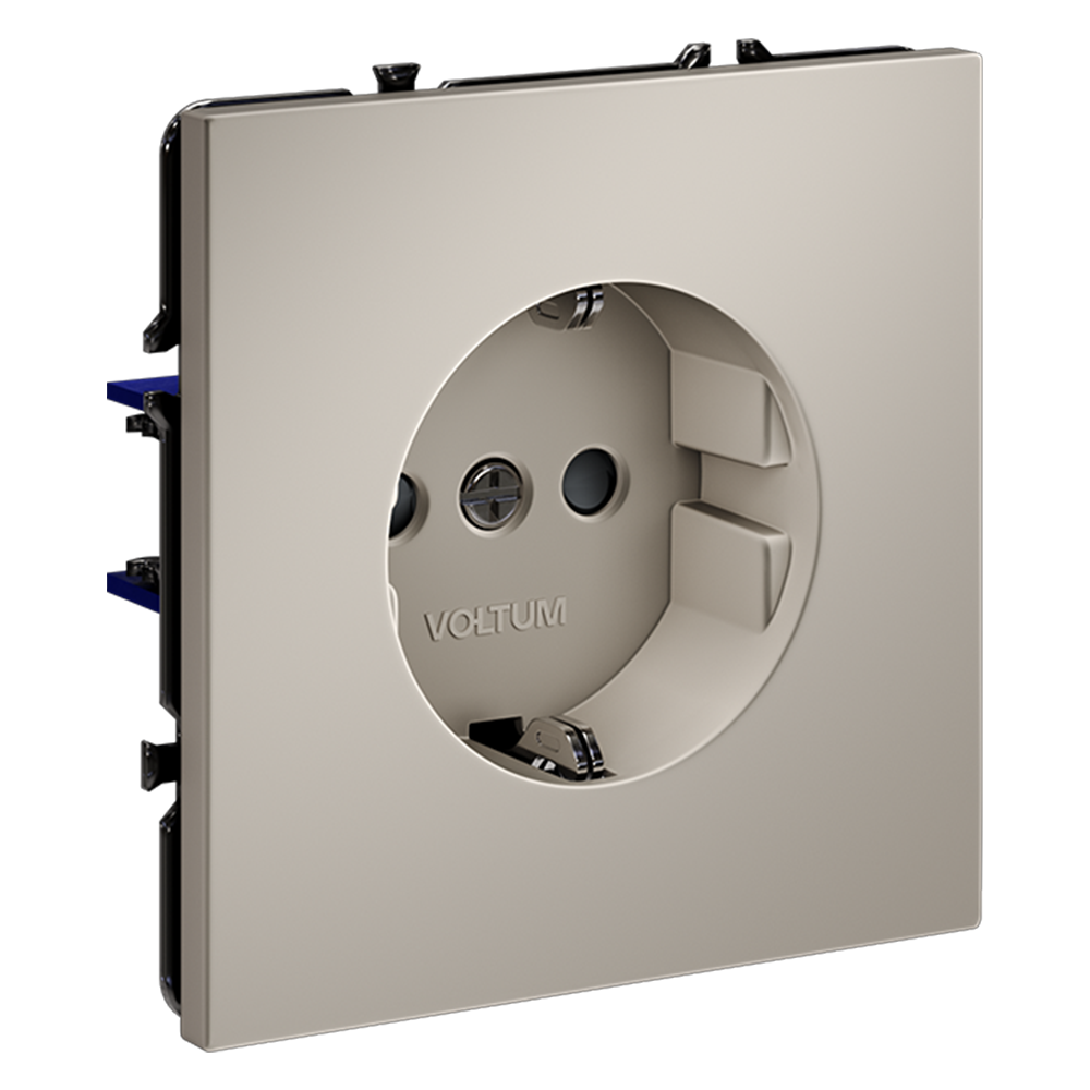 Розетка с заземлением и защитными шторками, 16А, кашемир Voltum S70 VLS040203
