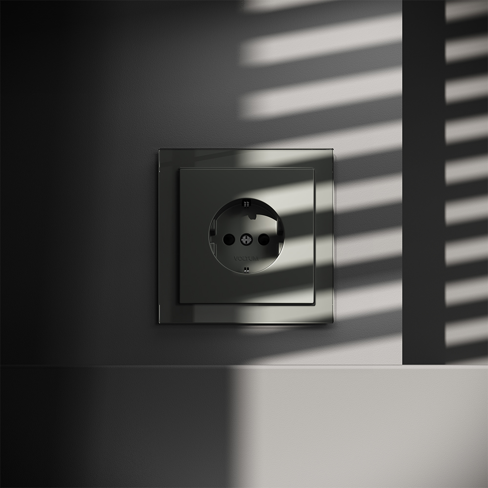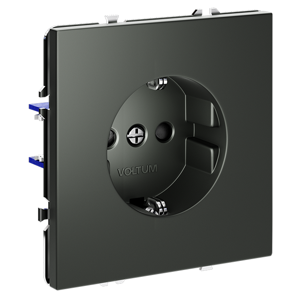 Розетка с заземлением и защитными шторками, 16А, титан Voltum S70 VLS040206