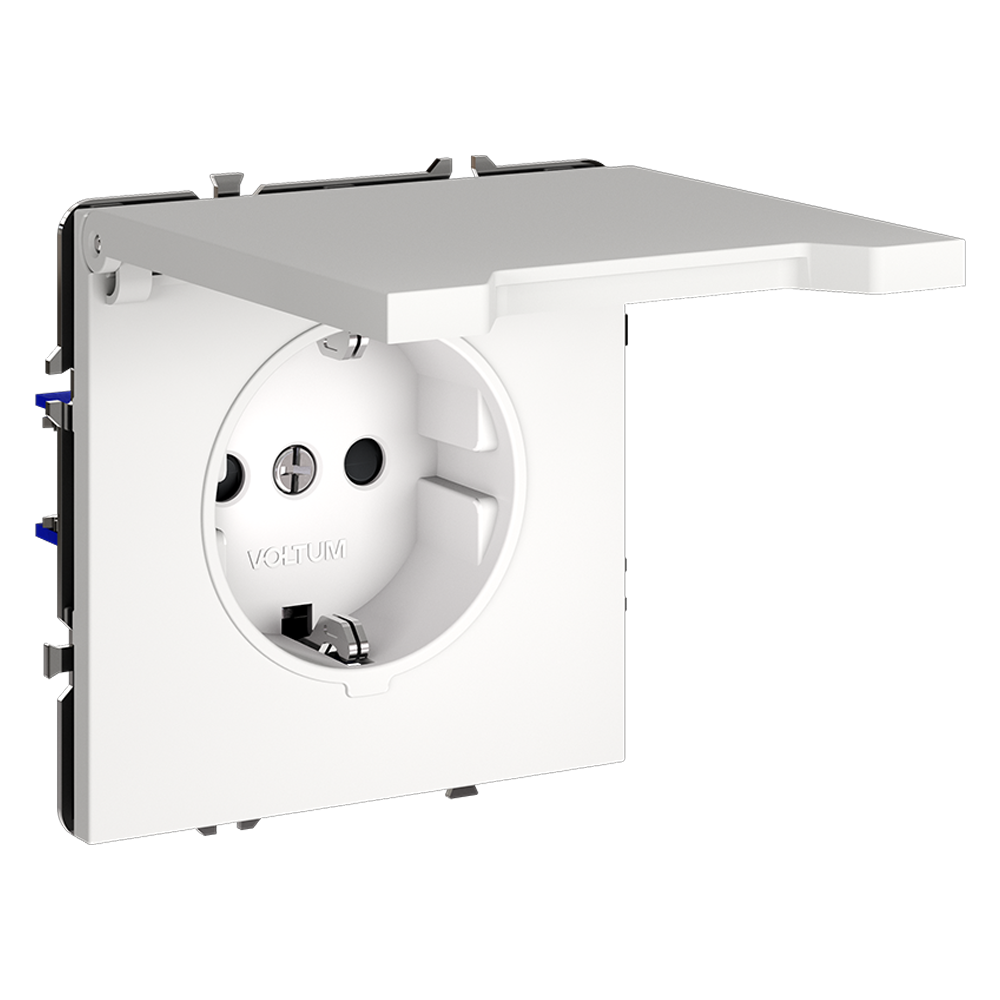 Розетка с заземлением, защитными шторками и крышкой 16А, белый матовый Voltum S70 VLS040302