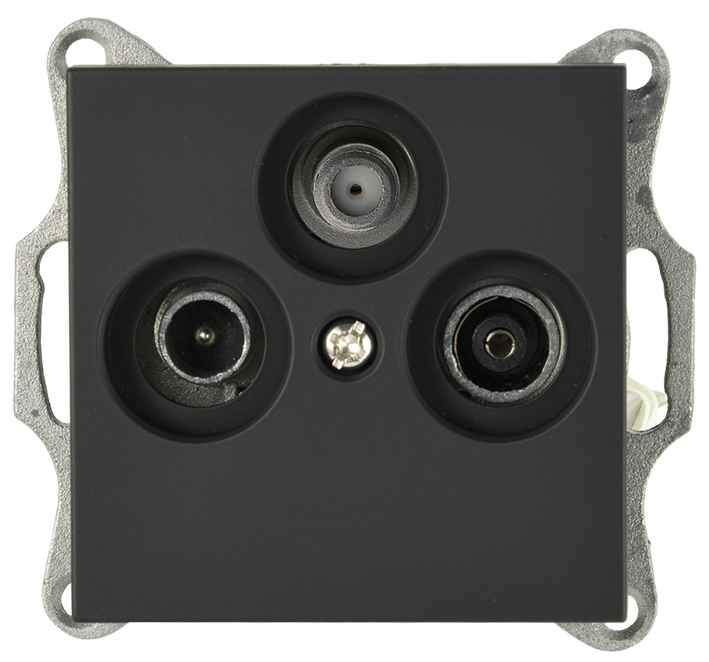 Розетка TV+FM+SAT Φ9.5mm проходная с накладкой черный матовый (soft touch) Jasmart G-Series G6207PB