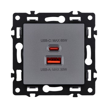 Розетка USB A+C 65W серый Kollinger Asthetik AS-024GY