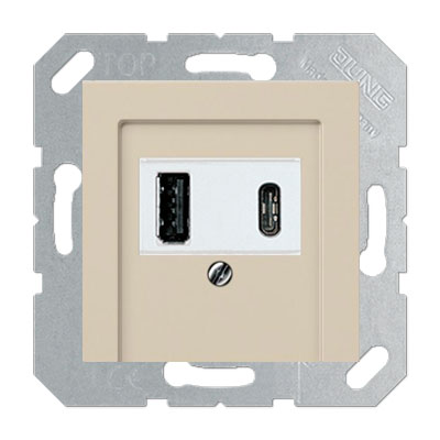 Розетка USB Тип A+C Jung A flow Бежевый USB15CAWW+A569PLT