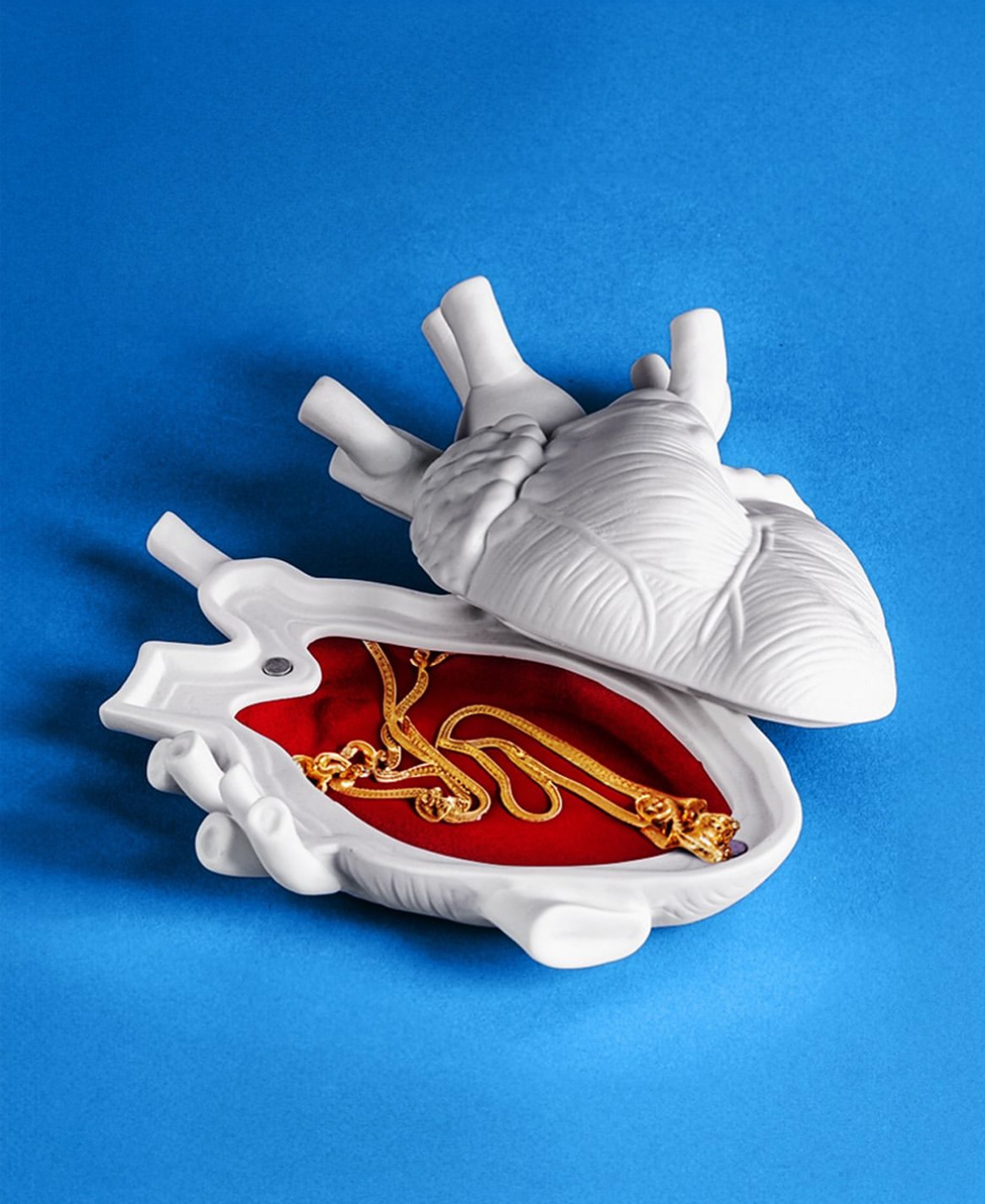 Love in a Box — это шкатулка для драгоценностей в форме сердца, украшенная внутри красным бархатом, которая выглядит так, как будто сошла со страниц учебника по анатомии. Сохранить что-то в сердце — простая и романтичная идея. Сюрприз для кого-то важного? Или, может быть, эта шкатулка для нас самих? В эту шкатулку можно положить небольшой ценный предмет, что-то, что должно быть в правильном месте.