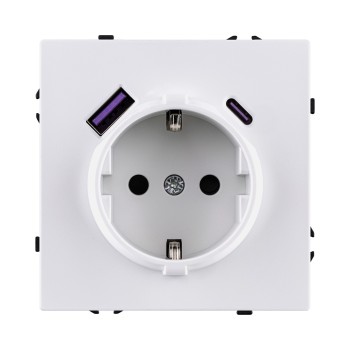 Штепсельная розетка с заземлением SCHUKO 16A/250 В с USB A+C 20W белый глянцевый Kollinger Eclipse EC-016WG