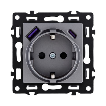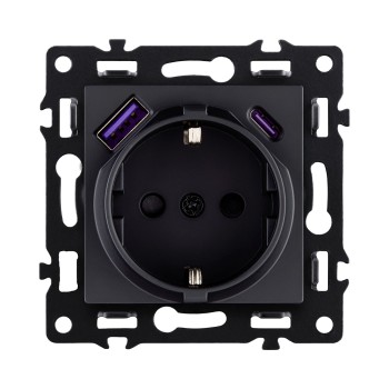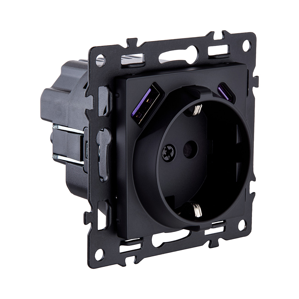 Штепсельная розетка с заземлением SCHUKO 16A/250 В с USB A+C 20W черный Kollinger Asthetik AS-016BK