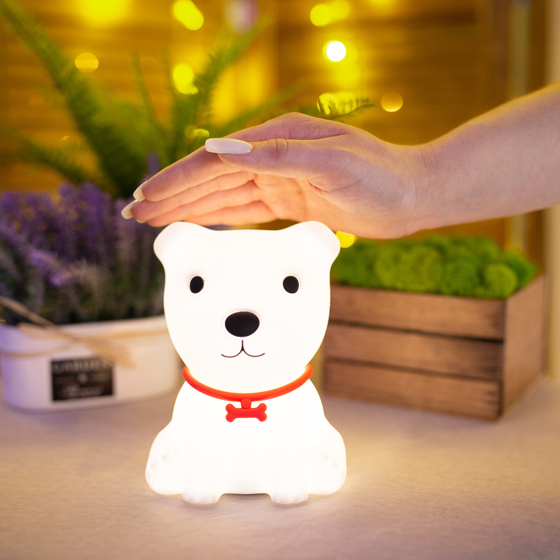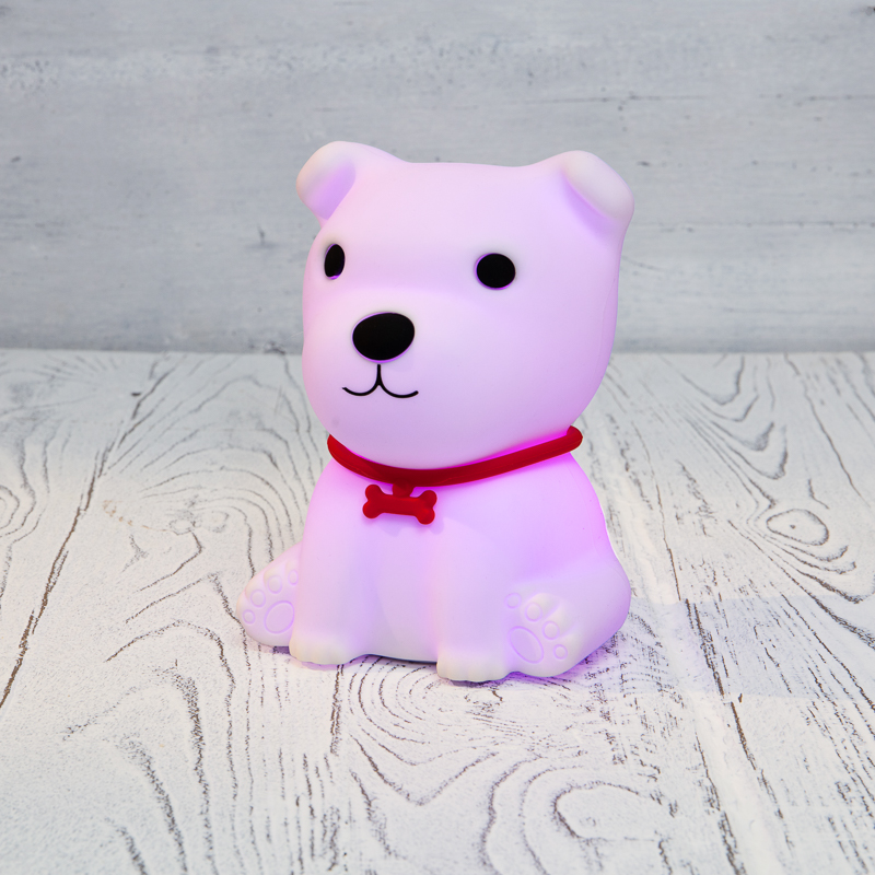 Замечательный силиконовый ночник щенок. Приобрела в детскую комнату малышу. Светит уютно, мягко, по яркости попадание в точку. Я очень довольна. Спасибо.