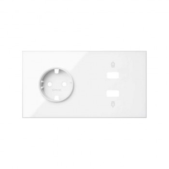 Кит на 2 поста, фронт: накладка на 1 розетку Schuko + 1 з/у 2хUSB черный глянец Simon 100, 10020205-138