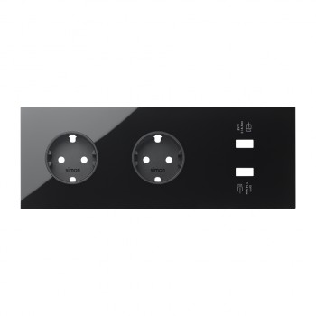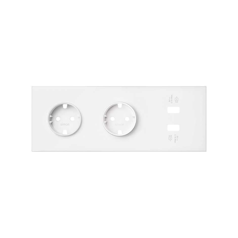 Кит на 3 поста, фронт: накладка на 2 розетки Schuko + 2 з/у USB SC белый матовый Simon 100, 10020309-230