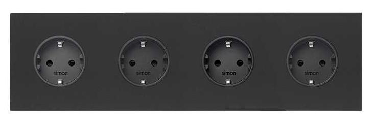 Кит на 4 поста, фронт: накладка на 4 розетки Schuko черный матовый Simon 100, 10020401-238