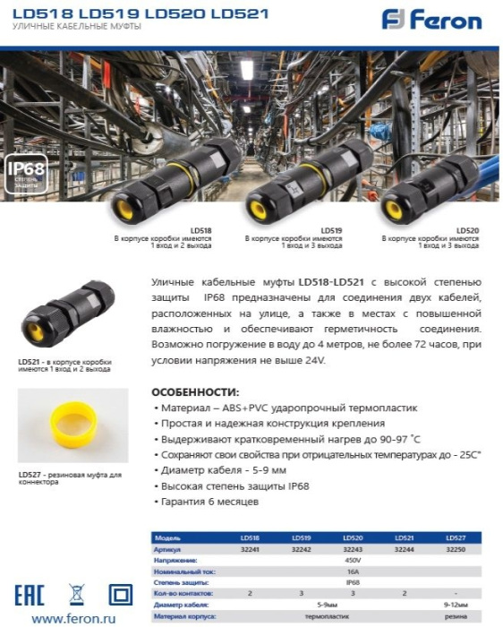 Соединитель LD521 32244 Feron обладает следующими основными характеристиками:.