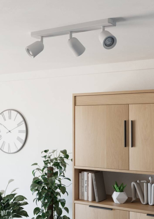 Осветительный прибор разработан в стиле Техно. Используются лампочки с цоколем GU10 мощностью 30 Вт, количеством 3 ед.