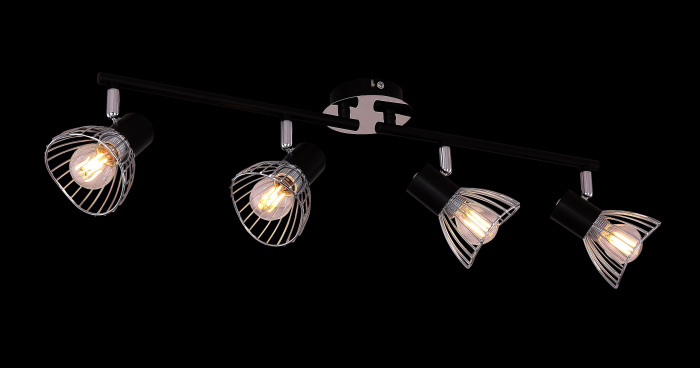 Осветительный прибор разработан в стиле Лофт. Подходят лампочки с цоколем E14 мощностью 160 Вт, в количестве 4 шт. Основной цвет модели 54815-4: Чёрный.
