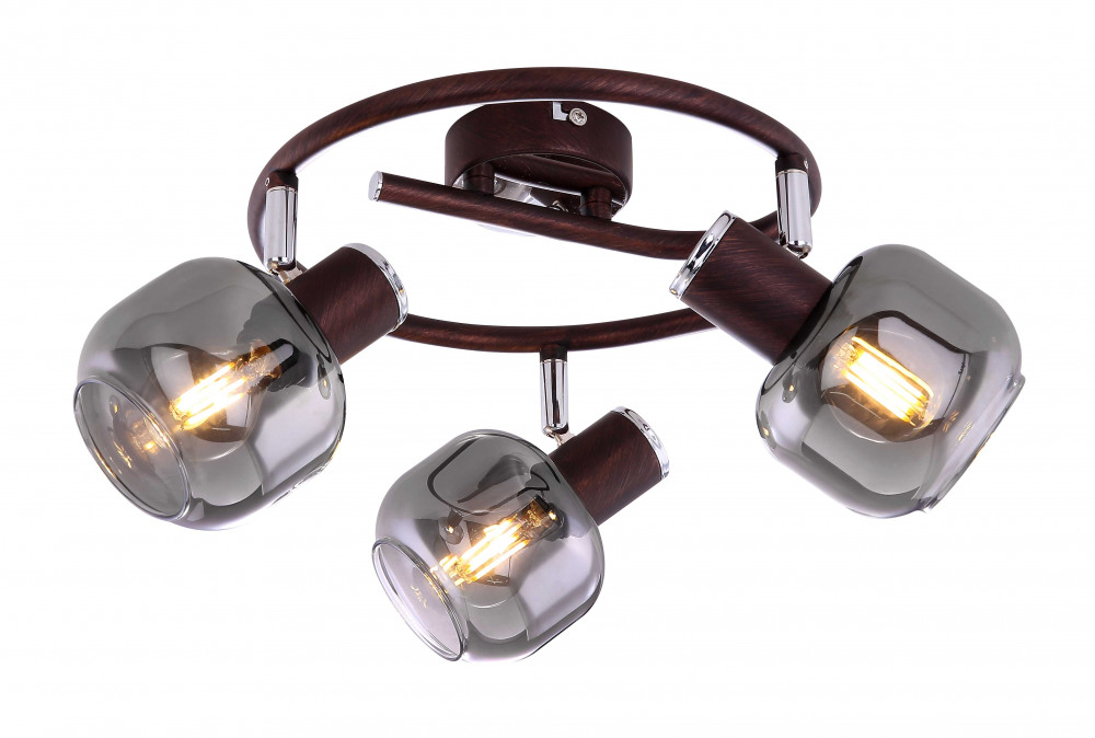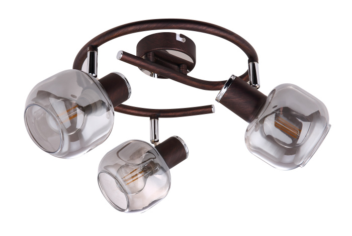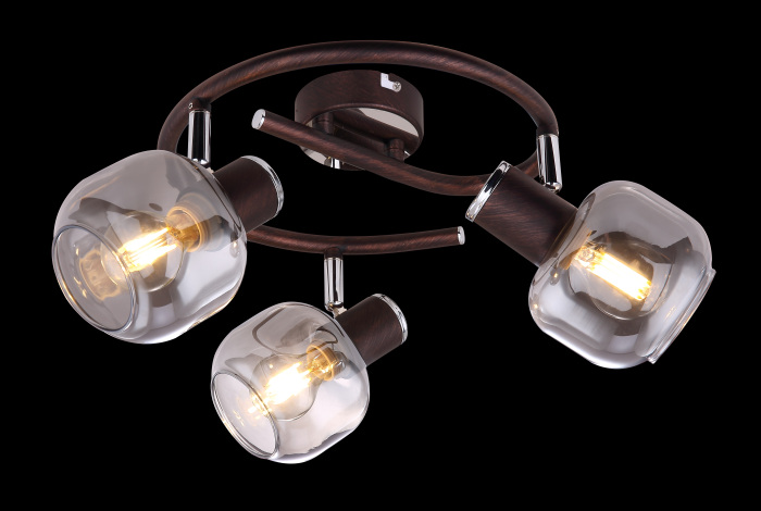 Осветительный прибор сделан в стиле Контемпорари. Задействуются лампочки с цоколем E14 мощностью 120 Вт, количеством 3 ед. Основной цвет модели 54303-3: Бронза.