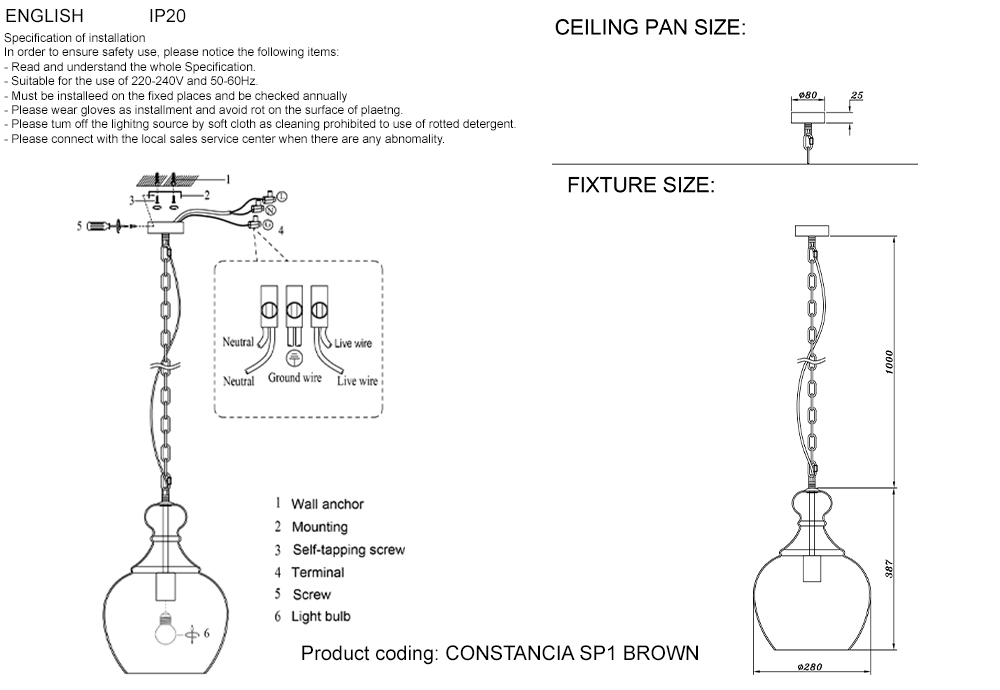 Осветительный прибор выполнен в стиле Лофт. Применяются лампочки цоколя E27 мощностью 40 Вт, количеством 1 шт. Цвет модели CONSTANCIA SP1 BROWN: Прозрачный.