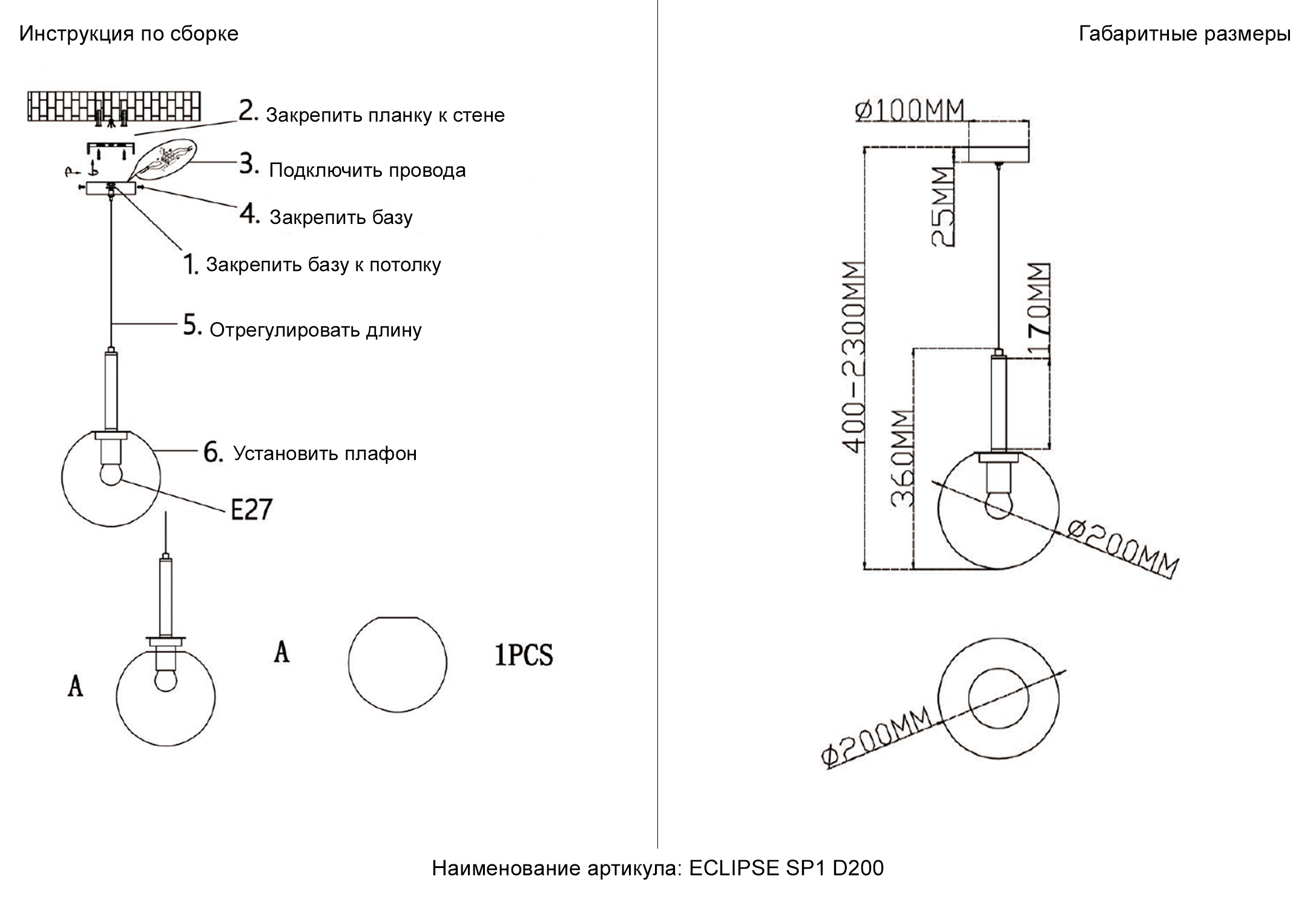 Осветительный прибор создан в стиле Современный. Подходят лампы с цоколем E27 мощностью 40 Вт, в количестве 1 ед. Цвет модели ECLIPSE SP1 D200 CHROME: Прозрачный,Серый.