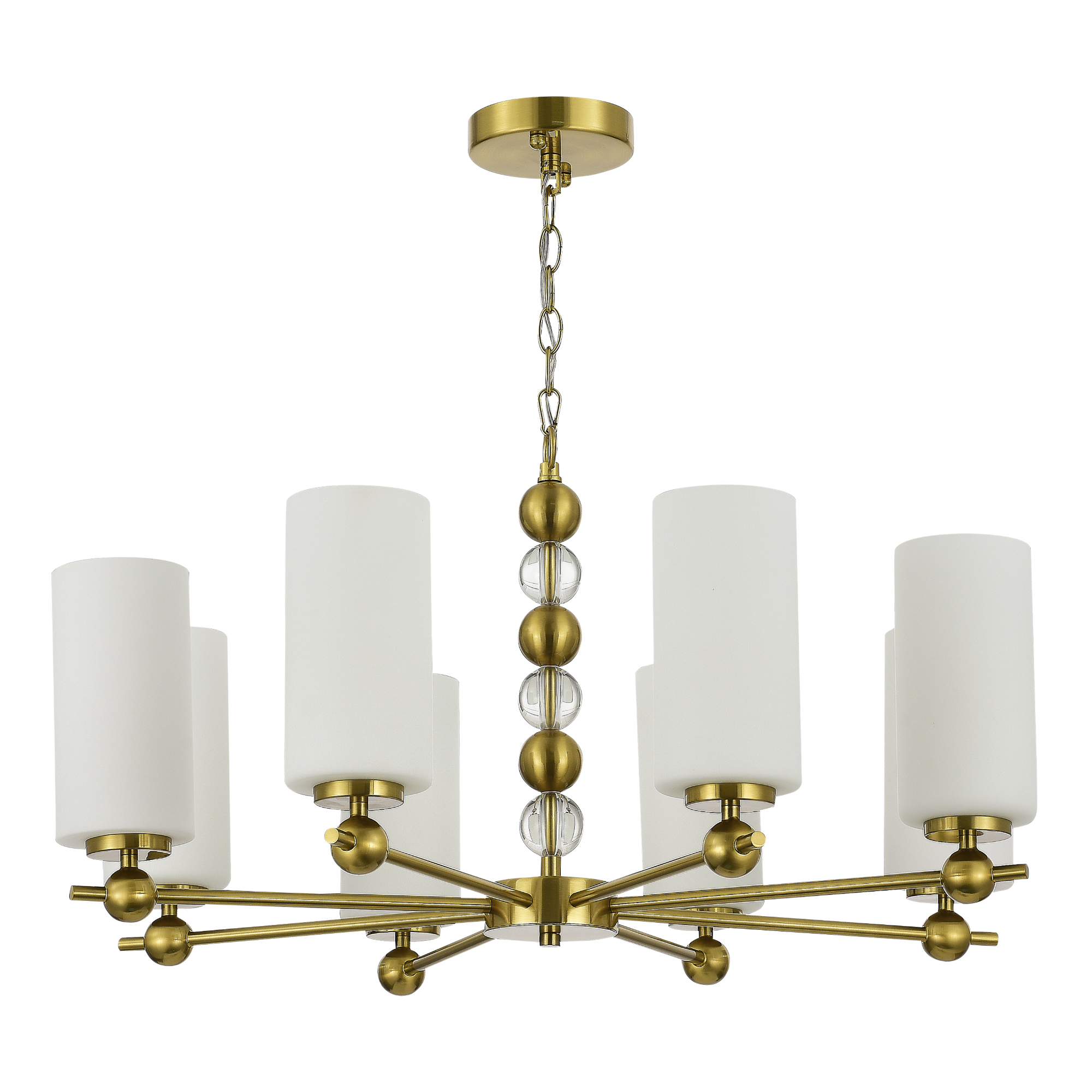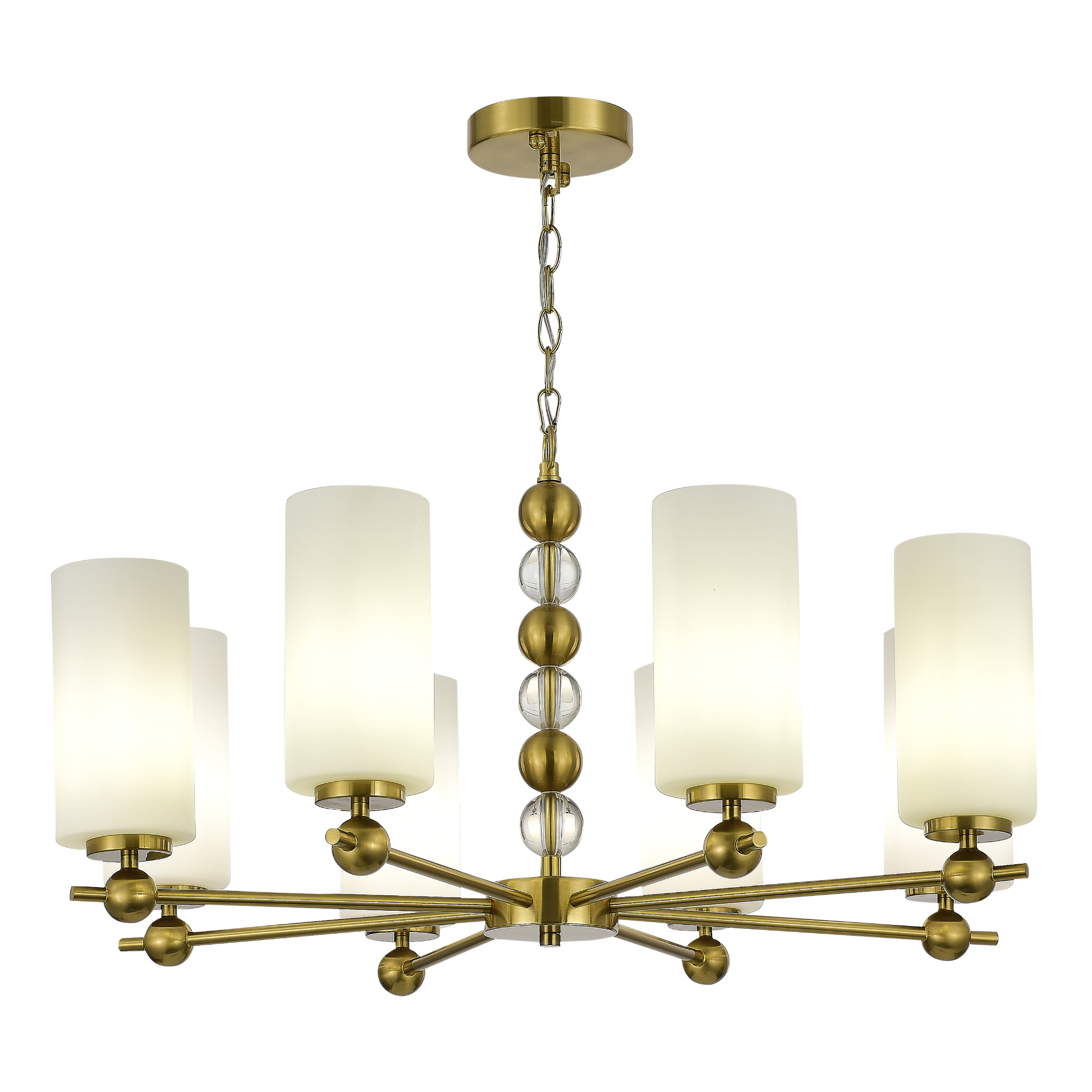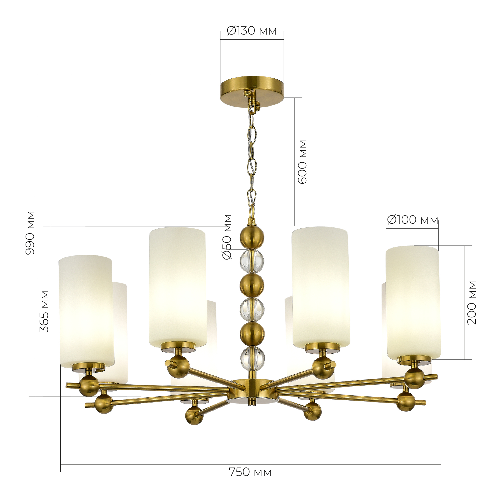Осветительный прибор создан в стиле Модерн. Применяются лампочки цоколя E27 мощностью 320 Вт, количеством 8 шт.