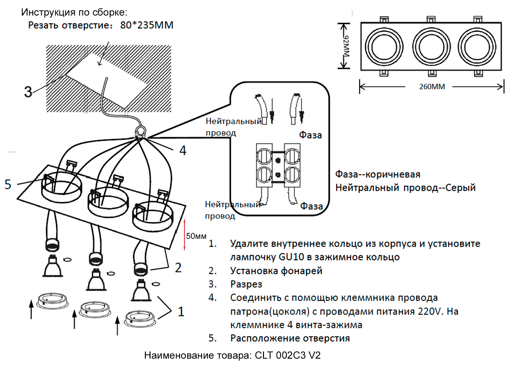 Осветительный прибор сделан в стиле Современный. Используются лампы с цоколем GU10 мощностью 50 Вт, в количестве 3 ед. Цвет модели CLT 002C3 BL V2: Чёрный.
