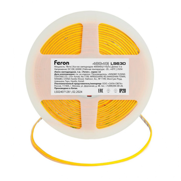 Светодиодная лента LS630 48949 Feron имеет основные параметры: цоколь LED, цветовая температура 6500, напряжение 12 В , влагозащита IP20.