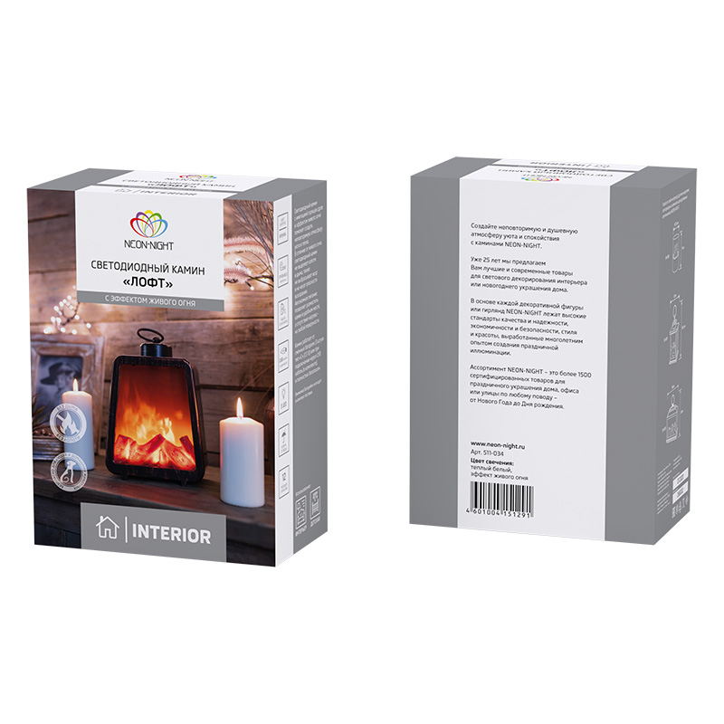 Светодиодный камин Лофт с эффектом живого огня 17х10х24,5 см, 3хС (не в комплекте) и USB (в комплекте) NEON-NIGHT 511-034 соответствует параметрам:, влагозащита IP20.