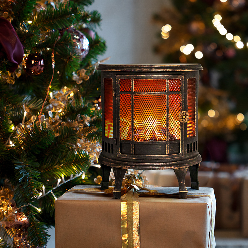 Светодиодный камин Винтаж мини с эффектом живого огня 24.8х12.7х30 см, батарейки 3хС (не в комплекте), с USB, бронзовый NEON-NIGHT 511-023
