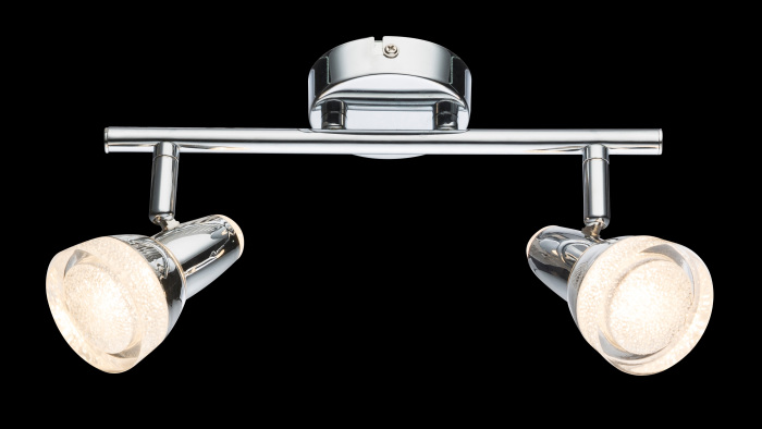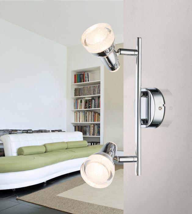 Осветительный прибор разработан в стиле Хай-тек. Подходят лампочки цоколя LED мощностью 8 Вт, количеством 2 шт. Цвет модели 56134-2: Хром.