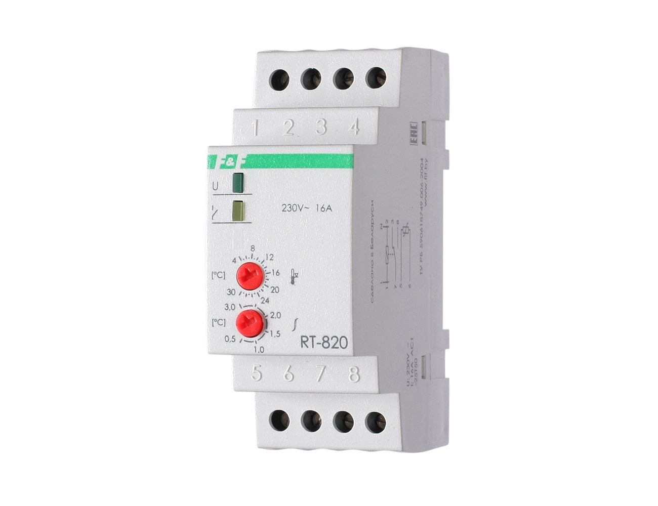 Терморегулятор RT-820 (+4°C-+30°C) на шину DIN, с датчиком RT на проводе, 16А Деви 140F1079R