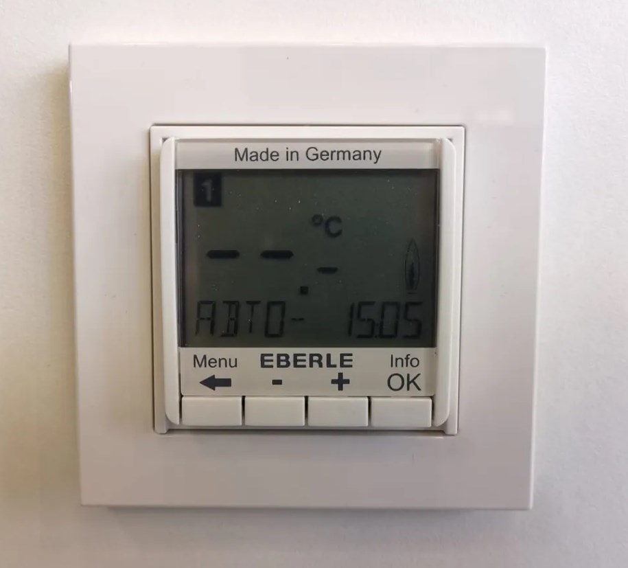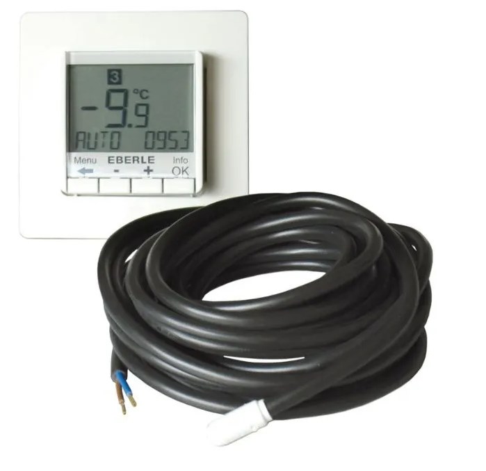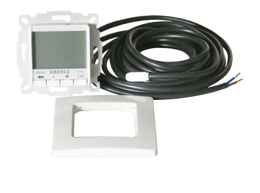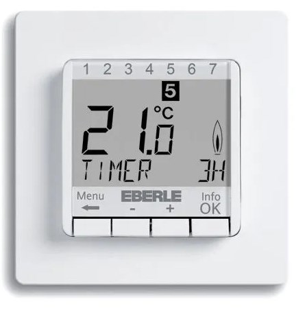 Eberle FIT 3U - энергосберегающий интеллектуальный регулятор температуры с двумя датчиками (температуры воздуха и пола). Большой ЖК-дисплей. Гибкая автоматизированная адаптация в соответствии с микроклиматом помещения и индивидуальными настройками пользователя. Основное назначение:Используется с системами электрического теплого пола и воздушного отопления. Три режима регулировки температуры: пола, воздуха, воздуха с ограничением температуры пола. Программирование на день или на неделю. · Выбор режима измерения температуры в меню настройки· Подробное описание при нажатии клавиши ”Info”· Установка температуры на определенное количество часов в режиме «Вечеринка»· Установка даты начала и окончания периода в режиме «Отпуск»· Большой ЖК-дисплей с цветовой подсветкой / Оптимизированное энергосбережение· Возможность программирования на РУССКОМ ЯЗЫКЕ (а также английском, французском, немецком)!· При потере питания – сохранение настроек в памяти прибора на 10 лет· Подсветка экрана