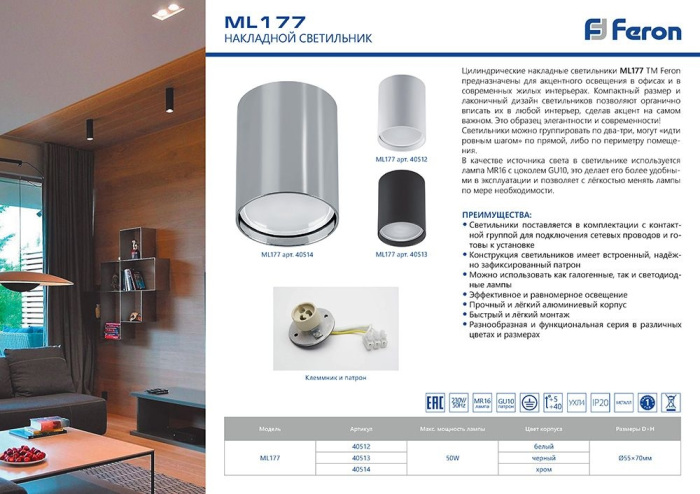 Осветительный прибор сделан в стиле Минимализм. Задействуются лампы цоколя GU10 мощностью 20 Вт, количеством 1 ед. Основной цвет модели 40513: Чёрный.